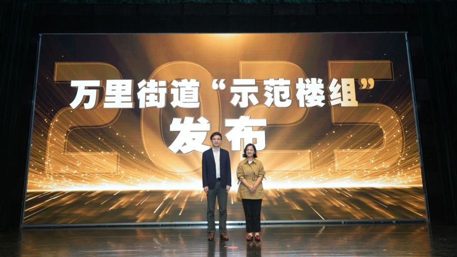 区委组织部副部长、区人才工作局局长邬晓亭和万里街道党工委副书记、办事处主任林开勇共同发布了万里新一批15个“示范楼组”,推动形成“示范带动、全域提升”的社区治理良好态势。